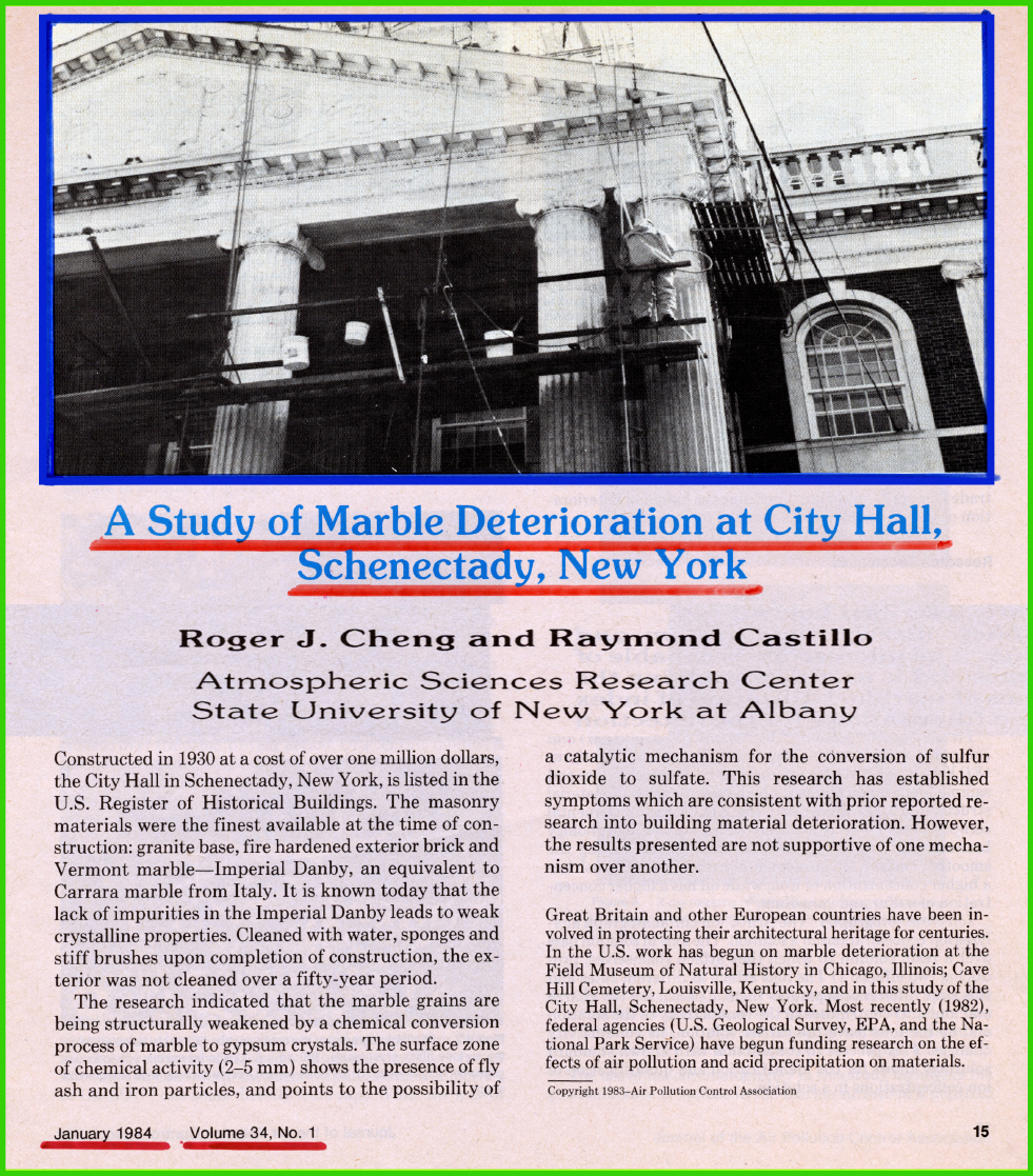 • 2. Cheng R.J, et al, "A Study of Marble Deterioration, City Hall, Schenectady, New York."