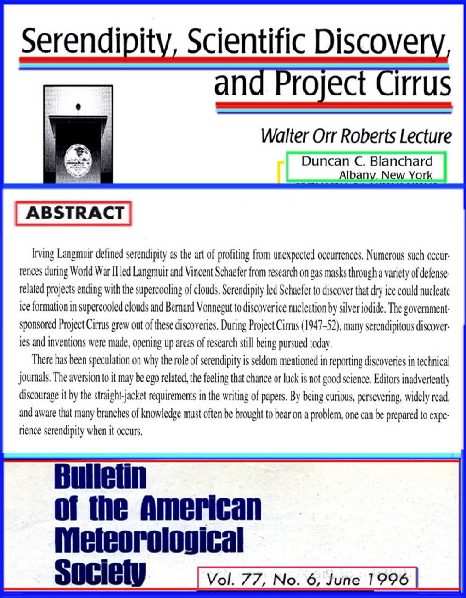 Vincent Schaefer, the older man at the left of the picture, was born in Schenectady, New York in the first decade of the Twentieth Century. Schenectady, a hotbed of engineers working for the General Electric Company in the most explosive time in history of inventive men, and an occasional woman, reaching in every direction to create a highly technological modern world, with electricity at its core. Though Vincent Schaefer had to quit high school to help his parents feed the family, and he never had the money or time for college, his life was filled with what he always called Serendipity. For him it was a word with a capital 'S' and an exclamation mark. It led Vincent to his great mentor, the Nobel Laureate Irving Langmuir. From many eager applicants, Langmuir hired the machinist apprentice Schaefer to build laboratory equipment. This happenstance ended up ensuring the brilliant young Schaefer of the laboratory space and funding to explore the mysteries and practical values of such natural phenomena as snow, ice and rain-including the seeding of clouds for weather modification. Above all other values from Dr. Langmuir, Schaefer learned to tap the potential of all with whom he worked. New scientists working under Schaefer's direction were offered the world to explore, the courage to follow both their minds and their hearts.