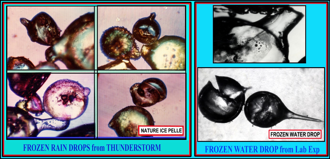 Micro-droplets(+) are generated by the freezing of a super cooled water drop, which is followed by the ejection of electric charged(-) ice fragments, by sublimation governed by curvature effect in a state of growth. (rather than by mechanical fracturing, splintering & collision), from frosty surface of the frozen drop. (ice pellet).